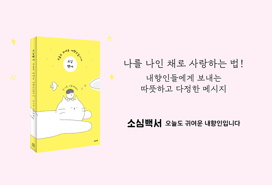 이번에 <소심백서>를 만들면서 새삼 느낀 건데요. 저는 쓰고 그리는 일이 정말 좋아요. 그래서 오래도록 행복하게 쓰고 그리는 것이 저의 꿈입니다. 다만 그 과정에서 계속 성장하고 싶어요. 지금까지는 할 거 다하는 내향인 치고는 할 거 많이 못 했던 것 같거든요.
